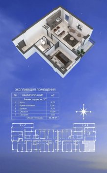 • Площадь: 53 кв. м — просторная и функциональная планировка.